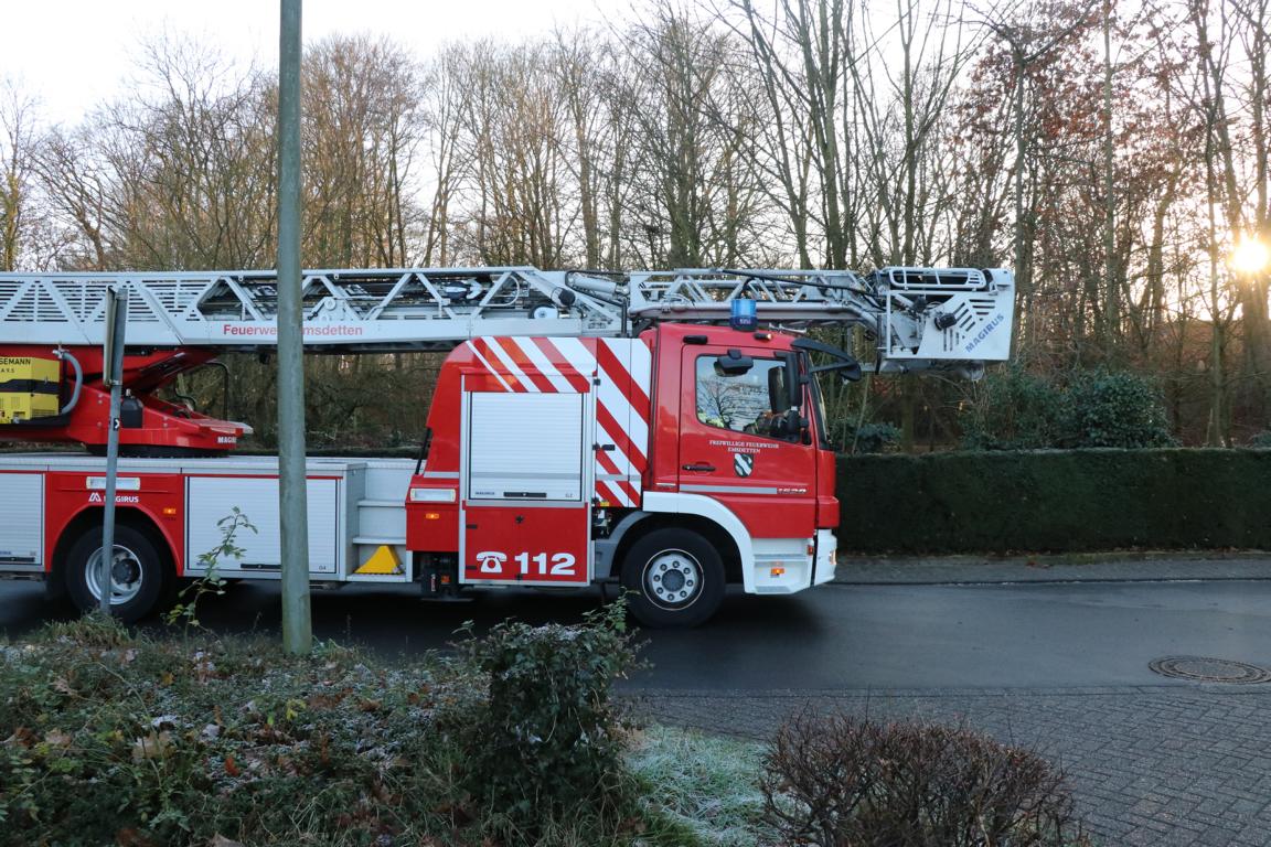 Feuerwehr rückt mit Drehleiter an