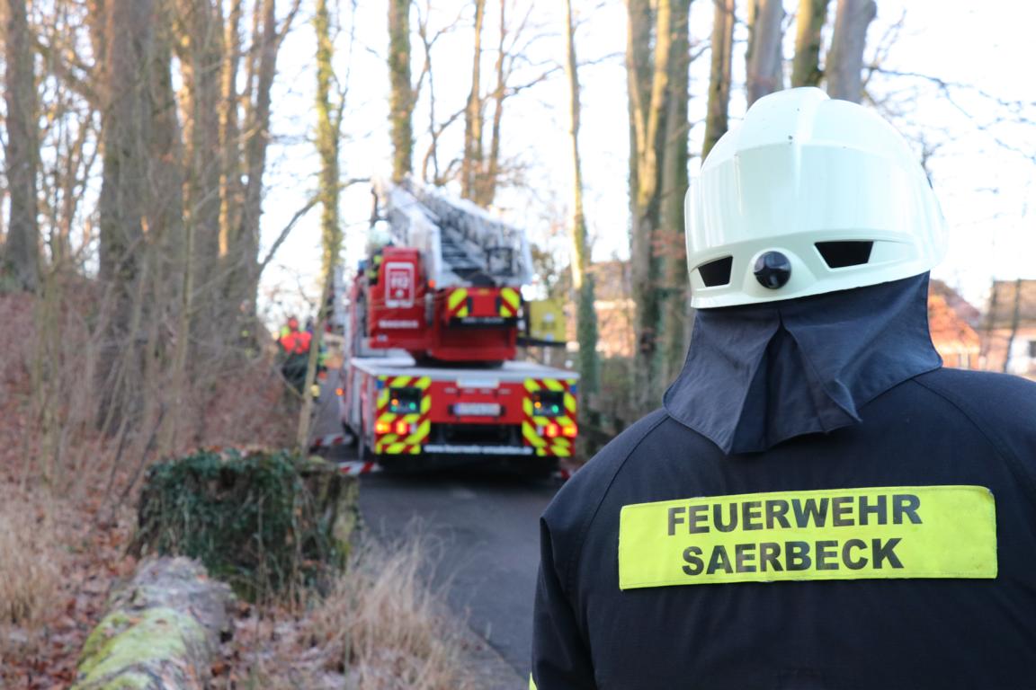 Dem Ordnungsamt der Gemeinde Saerbeck wurde am Dienstagmittag gemeldet, dass im Bereich Teigelkamp, an der Auffahrt zum Kindergarten, ein abgebrochener Ast in der Baumkrone hing und auf die Straße zu fallen drohte.