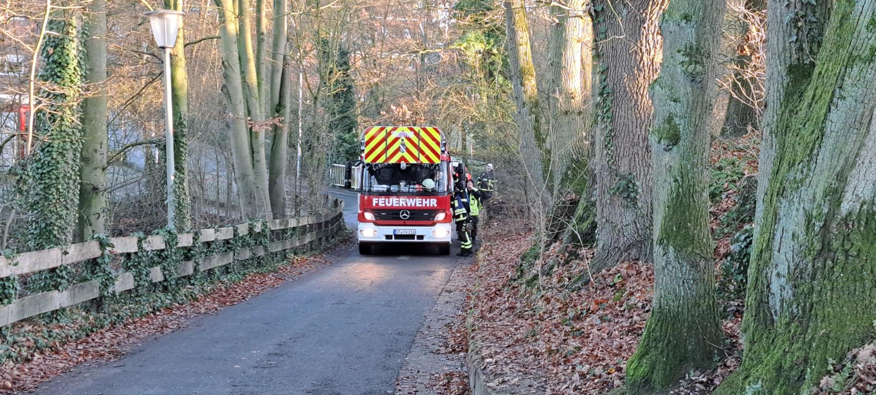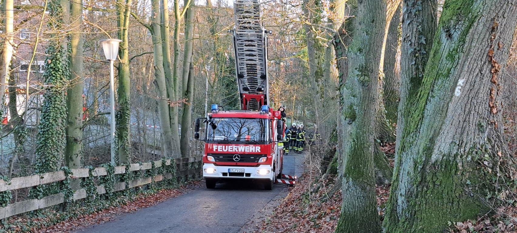 Feuerwehr rückt mit Drehleiter an