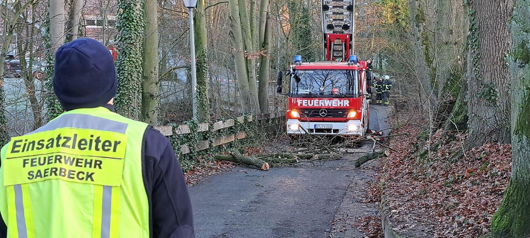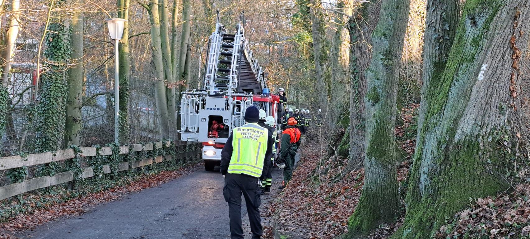 Dem Ordnungsamt der Gemeinde Saerbeck wurde am Dienstagmittag gemeldet, dass im Bereich Teigelkamp, an der Auffahrt zum Kindergarten, ein abgebrochener Ast in der Baumkrone hing und auf die Straße zu fallen drohte.